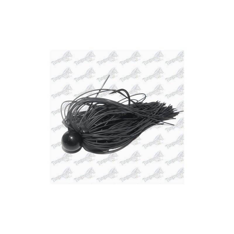 Su cabeza totalmente circular y con un acabado negro brillante, está fabricada en Tungsteno al 80% de pureza incorpora un fino anti hierbas fabricado con acero inoxidable. Los faldellines, que permanecen sujetos mediante una goma de caucho, están fabricados con silicona redondeada premium de máxima calidad,Este jig pensado para la pesca finesse.