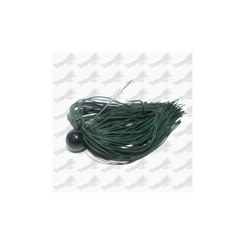 Su cabeza totalmente circular y con un acabado negro brillante, está fabricada en Tungsteno al 80% de pureza incorpora un fino anti hierbas fabricado con acero inoxidable. Los faldellines, que permanecen sujetos mediante una goma de caucho, están fabricados con silicona redondeada premium de máxima calidad,Este jig pensado para la pesca finesse.