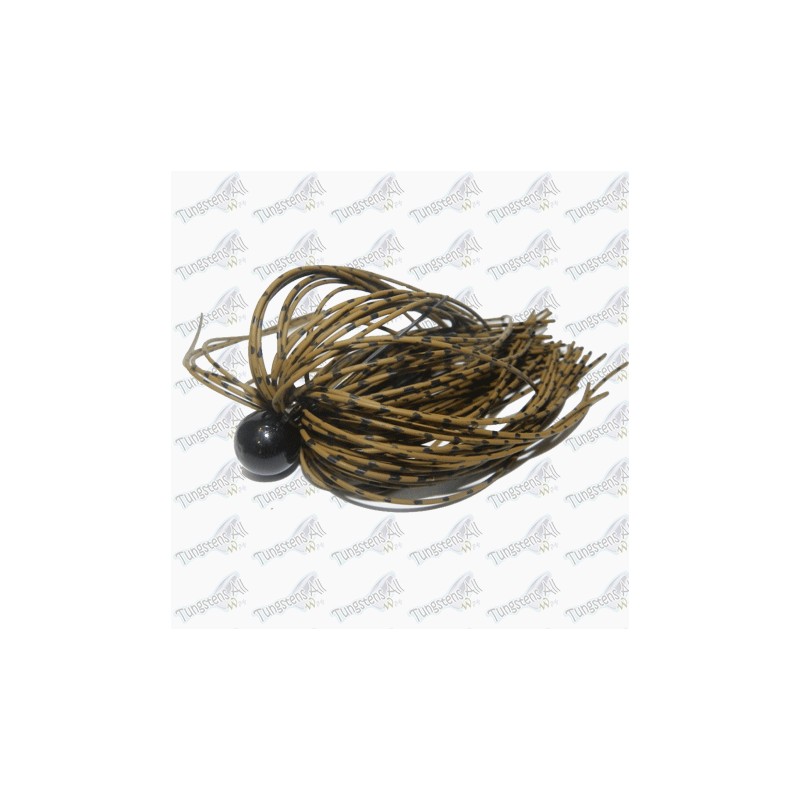 Su cabeza totalmente circular y con un acabado negro brillante, está fabricada en Tungsteno al 80% de pureza incorpora un fino anti hierbas fabricado con acero inoxidable. Los faldellines, que permanecen sujetos mediante una goma de caucho, están fabricados con silicona redondeada gruesa premium de máxima calidad,Este jig pensado para la pesca finesse.