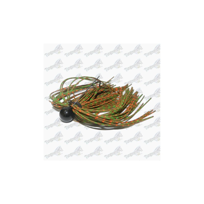 Su cabeza totalmente circular y con un acabado negro brillante, está fabricada en Tungsteno al 80% de pureza incorpora un fino anti hierbas fabricado con acero inoxidable. Los faldellines, que permanecen sujetos mediante una goma de caucho, están fabricados con silicona redondeada gruesa premium de máxima calidad,Este jig pensado para la pesca finesse.