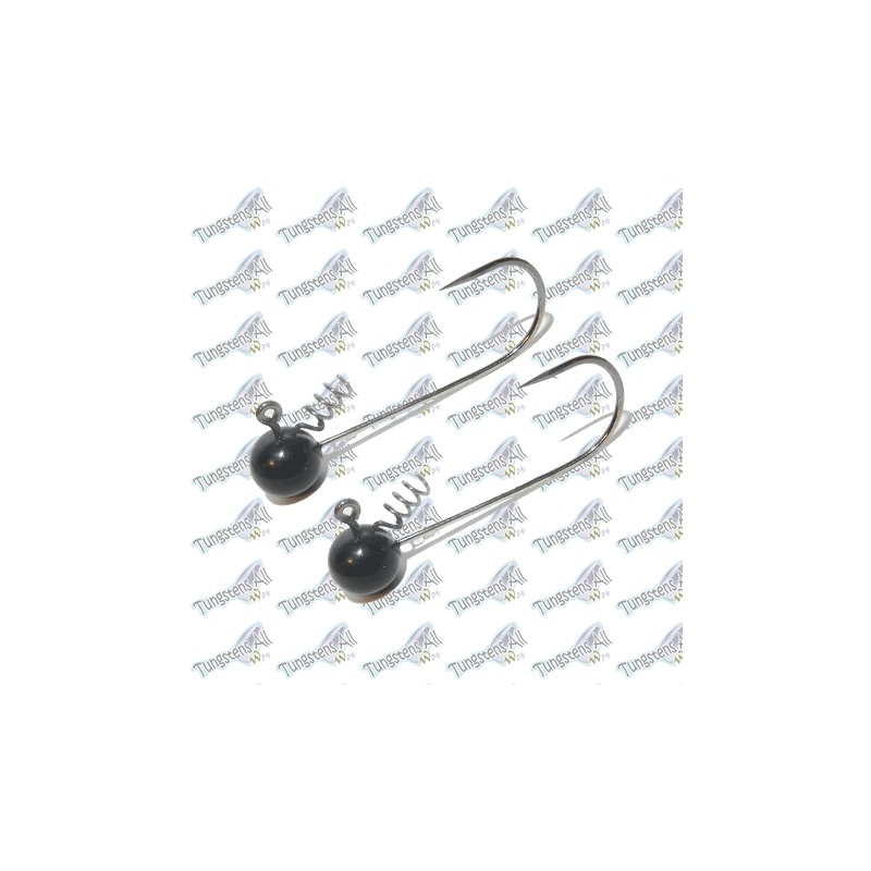 La cabeza compuesta con un 97% de tungsteno recibe un diseño redondo facilita la pesca en zonas con vegetación. Montado sobre un anzuelo Mustand 2/0 de calidad Premium con una inclinación a 60º y un muelle fino y largo totalmente moldeable de acero inoxidable, diseñado para introducir el señuelo fácilmente.
