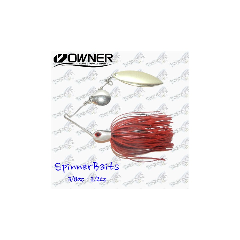 Spinnerbaits con cuerpo de Tungsteno 97% y alambre, con 2 palas ovaladas(Tipo Indiana). El Tungsteno hace que el señuelo sea mucho mas discreto y pequeño, cabeza de color blanco y negro, y acompañada de faldellines de silicola de gran calidad. Anzuelo Onwer