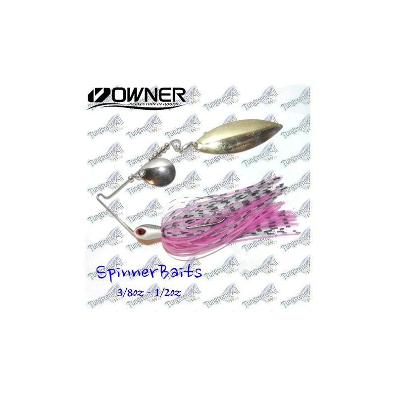 Spinnerbaits con cuerpo de Tungsteno 97% y alambre, con 2 palas ovaladas(Tipo Indiana). El Tungsteno hace que el señuelo sea mucho mas discreto y pequeño, cabeza de color blanco y negro, y acompañada de faldellines de silicola de gran calidad. Anzuelo Onwer