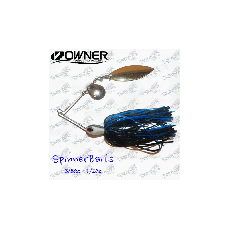Spinnerbaits con cuerpo de Tungsteno 97% y alambre, con 2 palas ovaladas(Tipo Indiana). El Tungsteno hace que el señuelo sea mucho mas discreto y pequeño, cabeza de color blanco y negro, y acompañada de faldellines de silicola de gran calidad. Anzuelo Onwer