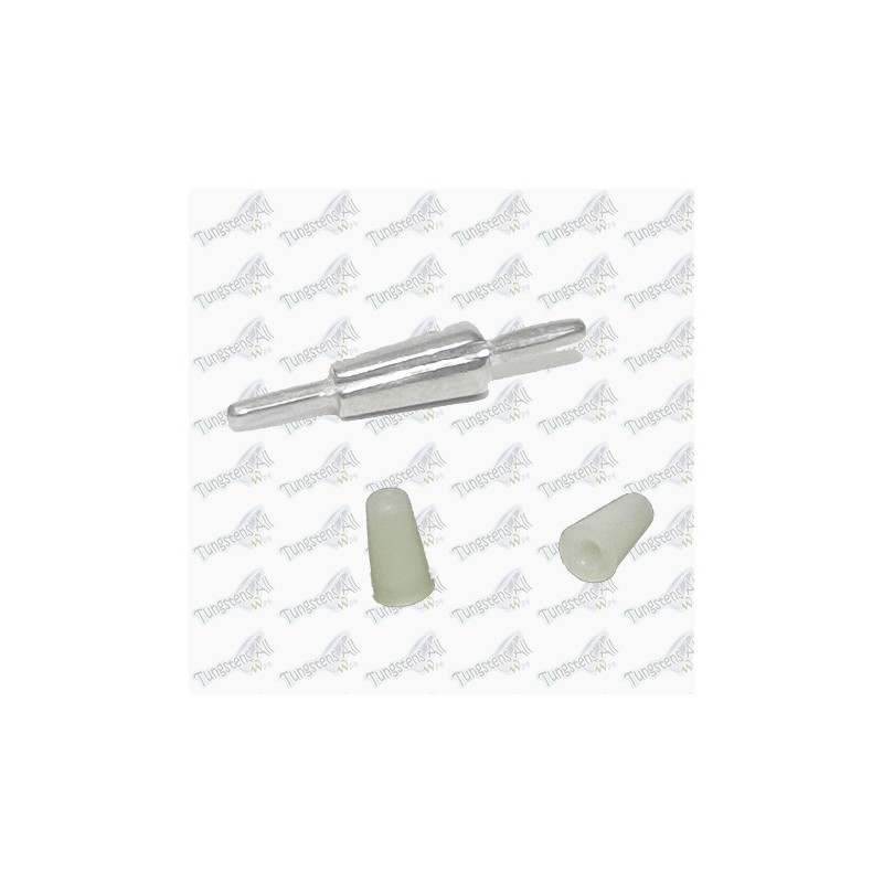Tungsteno 97% alargado para usarse en la técnica Split Shot. Viene con 2 gomas